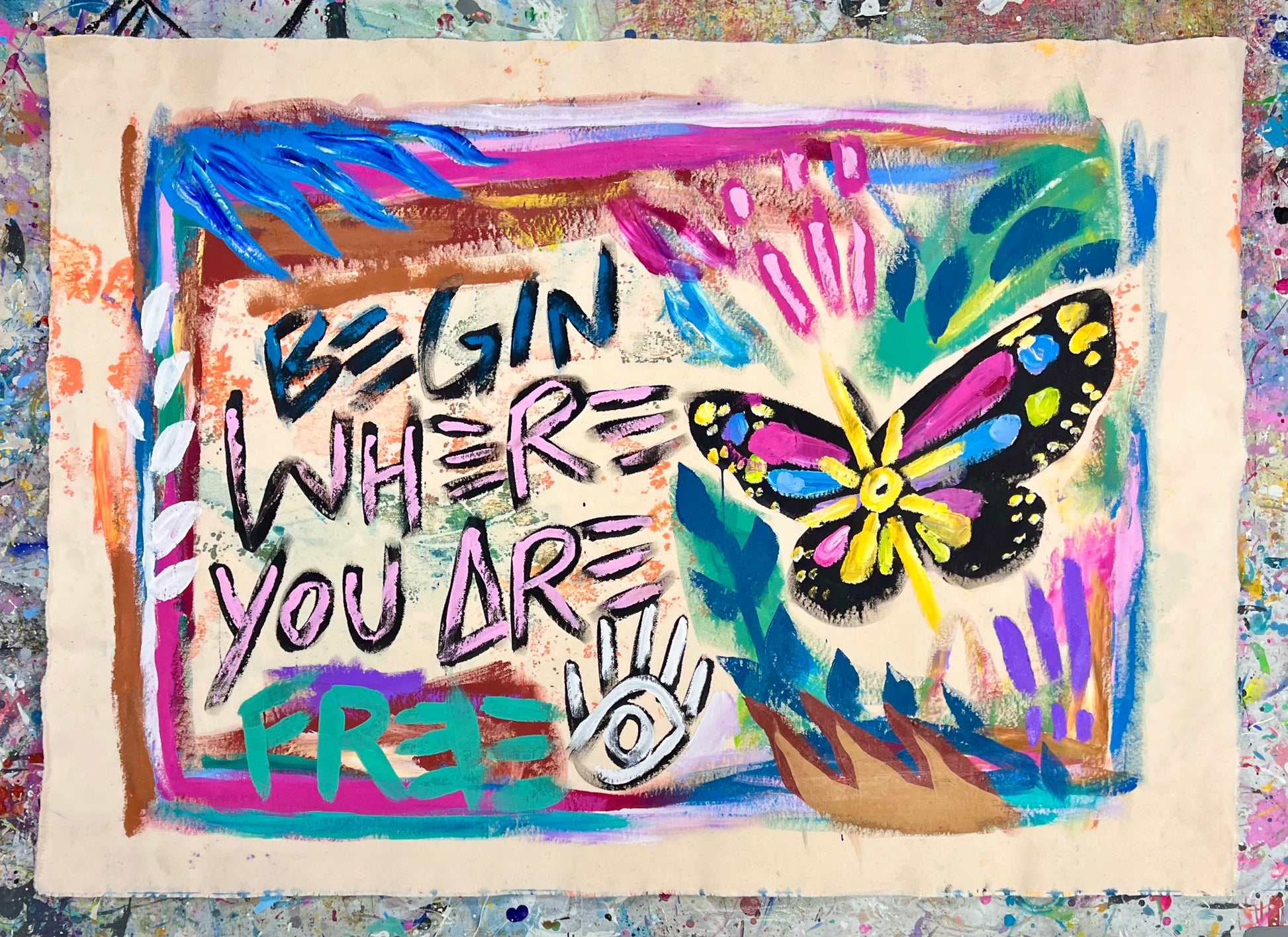 48.5” x 34.5” inches - acrylic on varnished un-stretched canvas