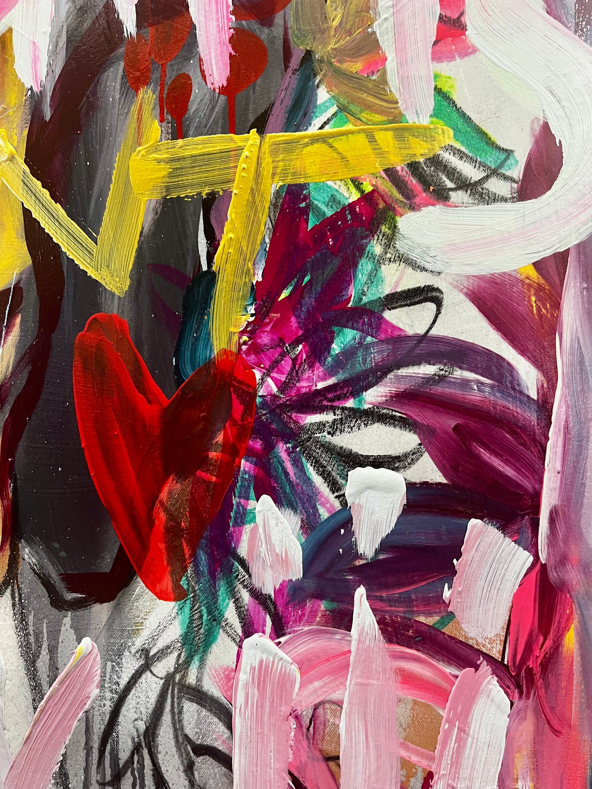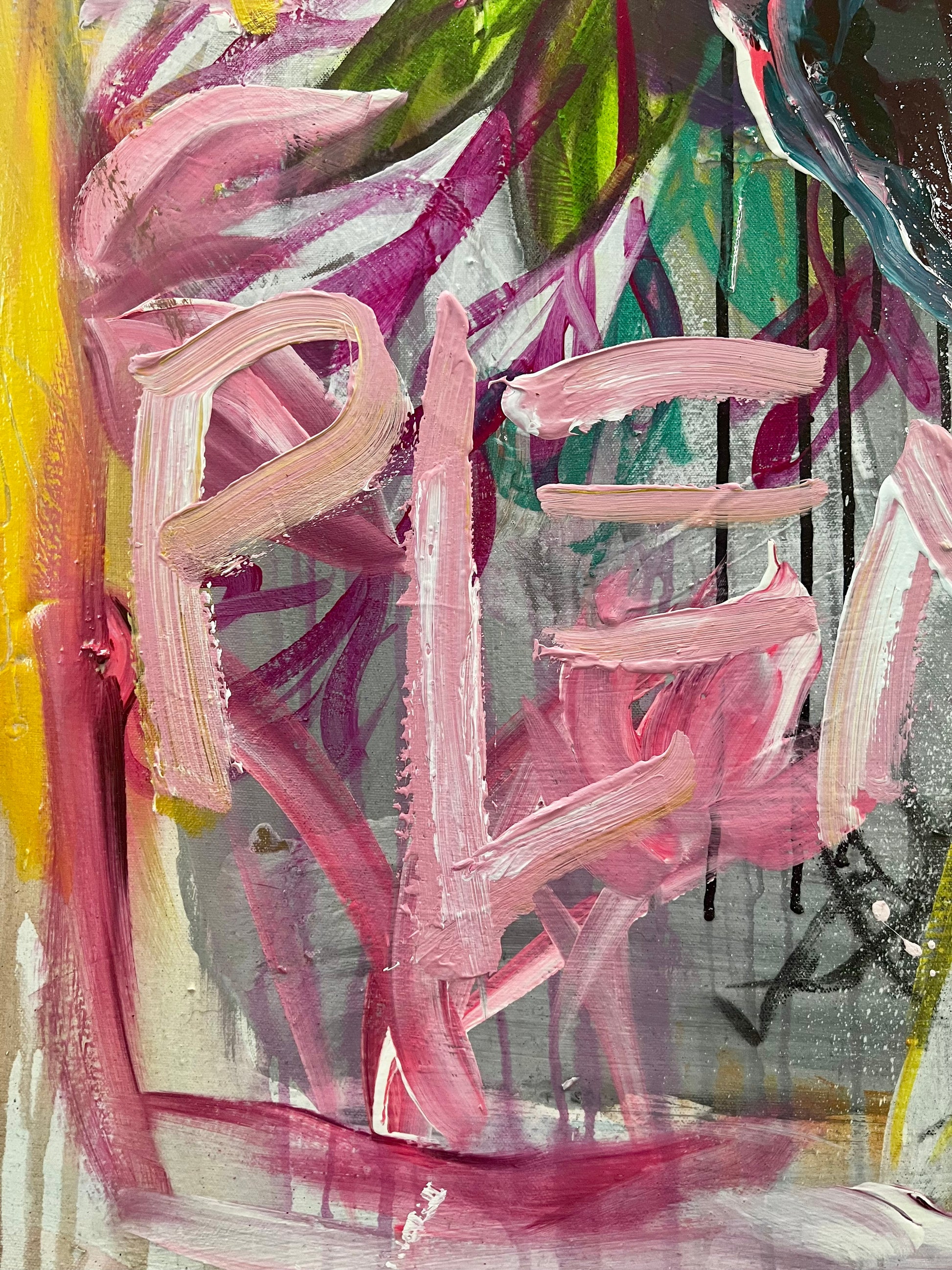 42.5” x 42.5” inch canvas, stretched on a hand-built 1.5” deep wooden stretcher frame