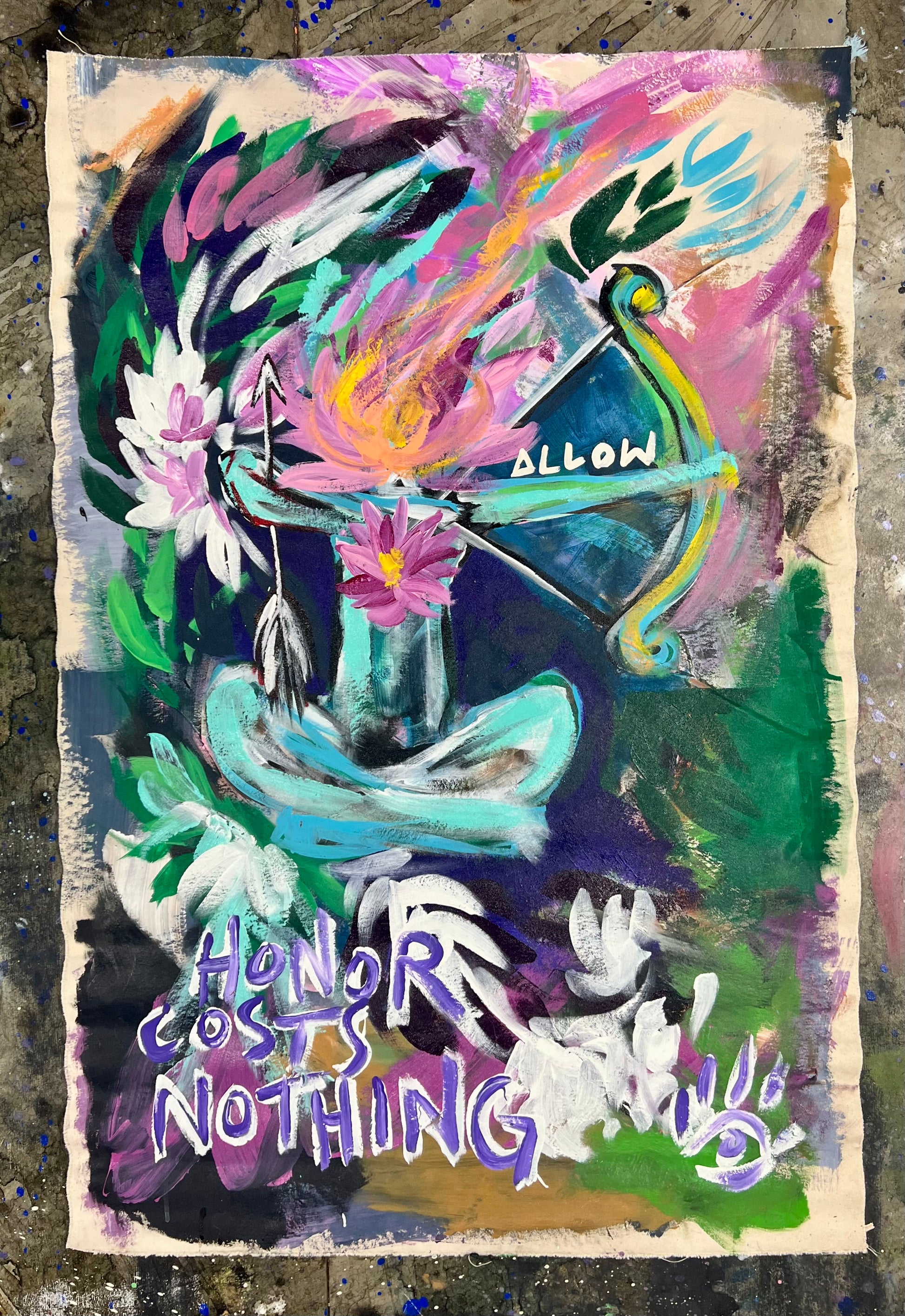 36” x 54” inches on unstretched canvas