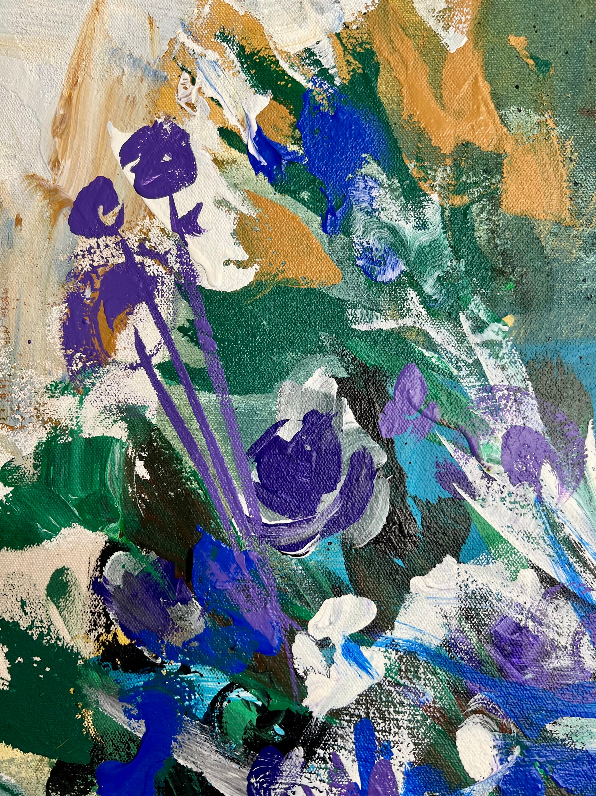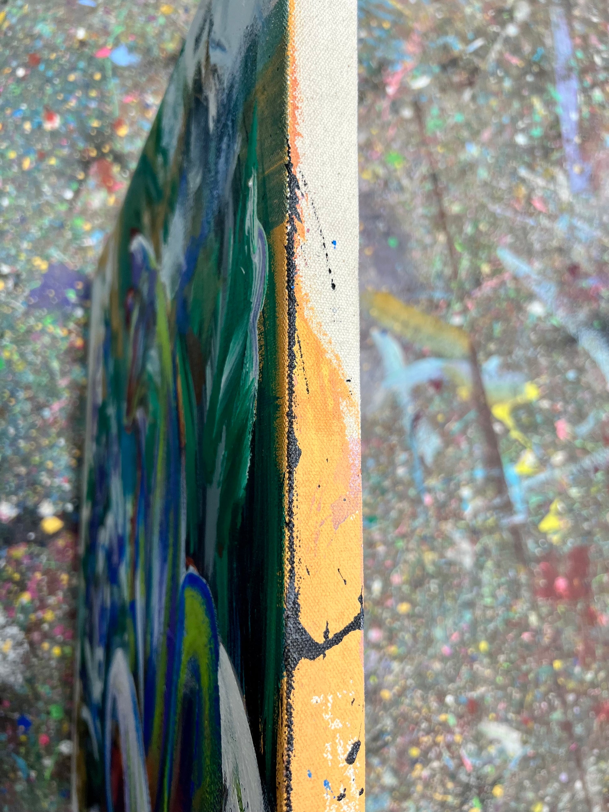 24” x 24” inch canvas mounted on 1” inch deep wooden stretcher frame