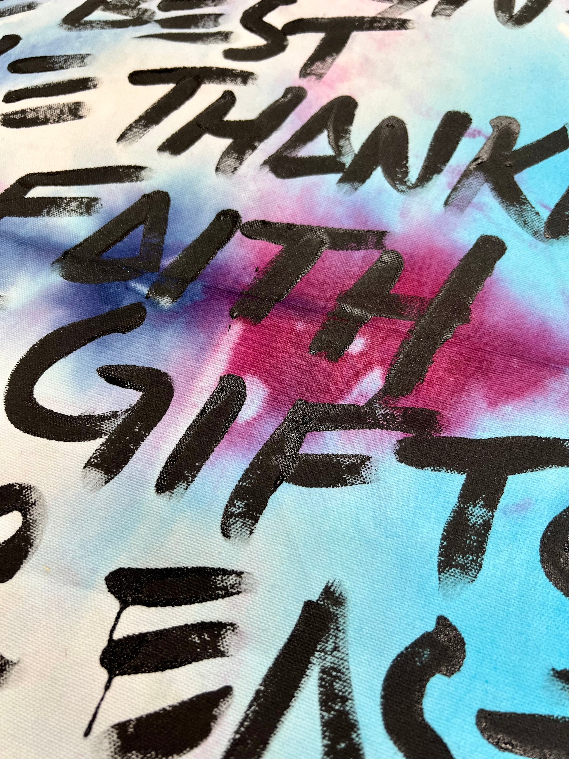 30.5” x 37” inches on unstretched hand dyed fabric