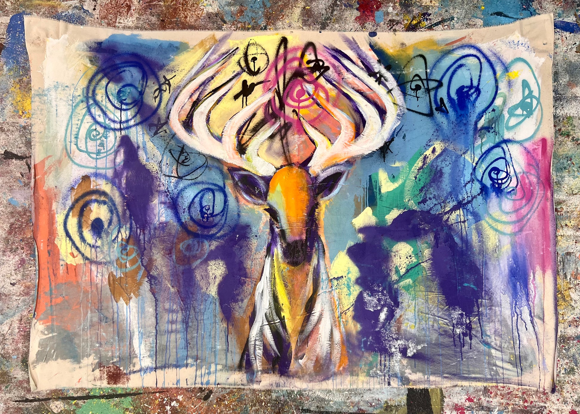 70.5” x 48” inches on unstretched canvas