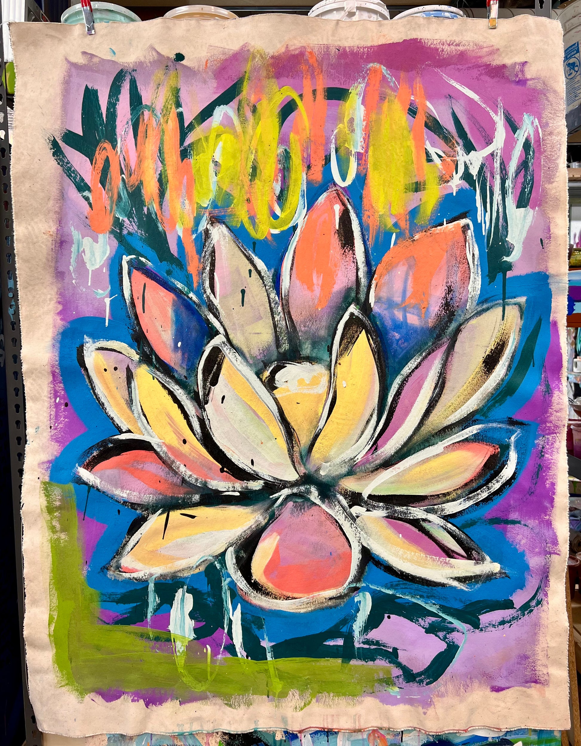 46” x 60” inches on unstretched canvas